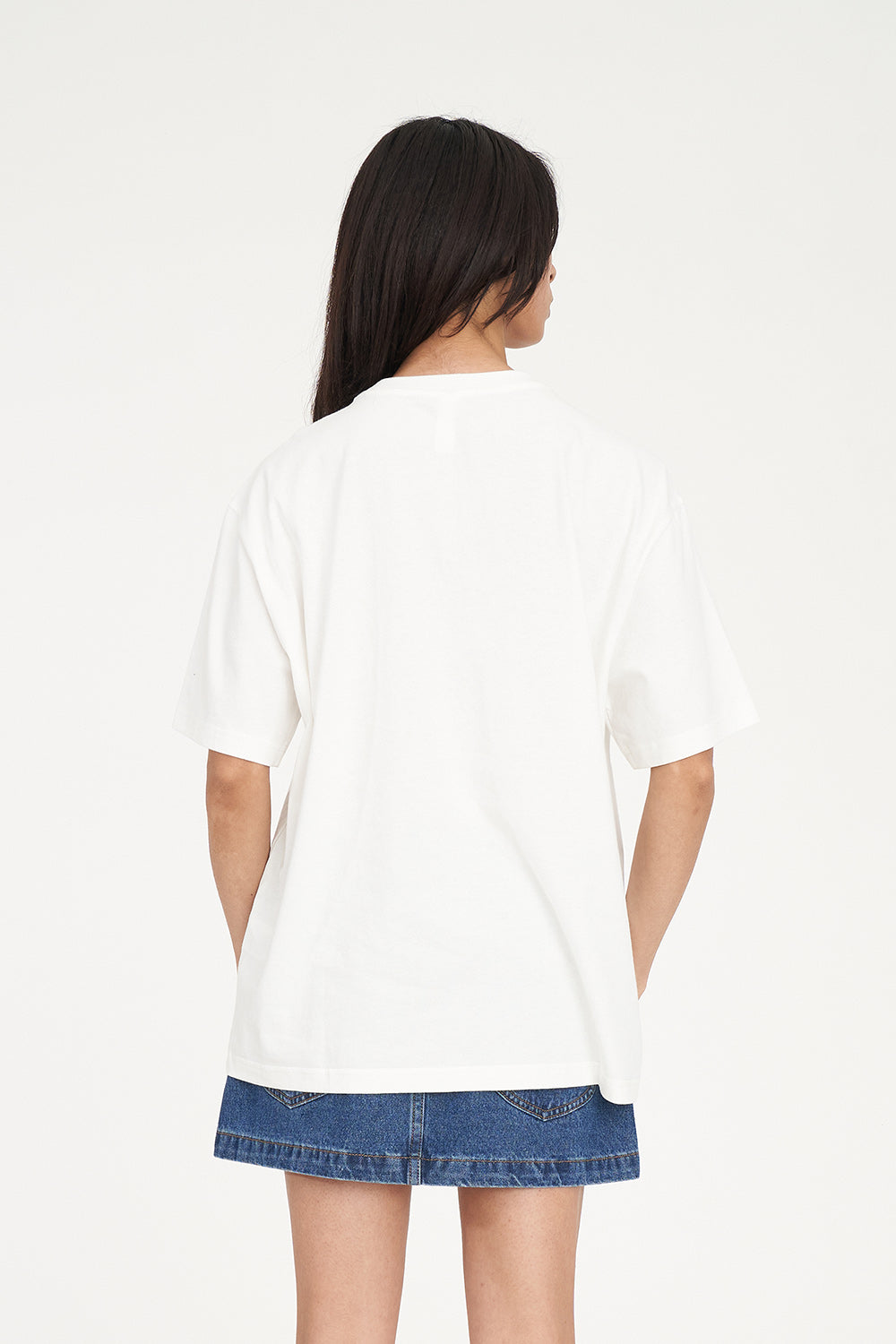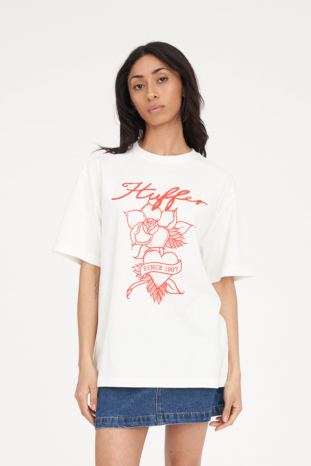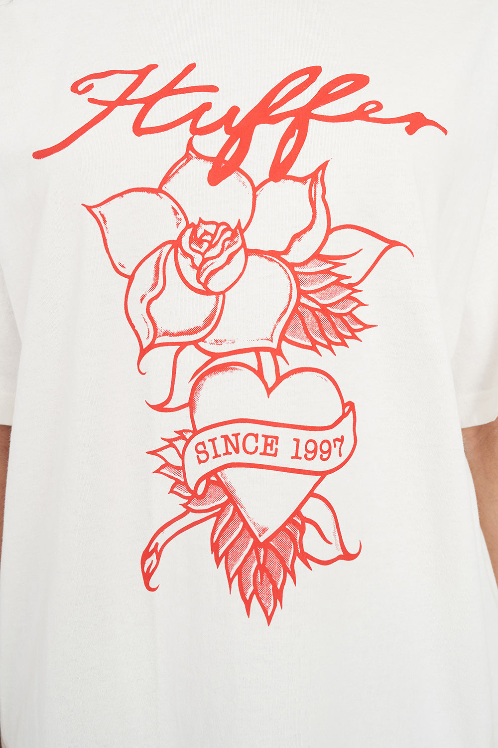• What you need to know: 100% Cotton, 220gsm, 20mm Neck rib, Premium weight jersey, Boxy oversized fit, Short sleeve, Huffer branded placement screenprint