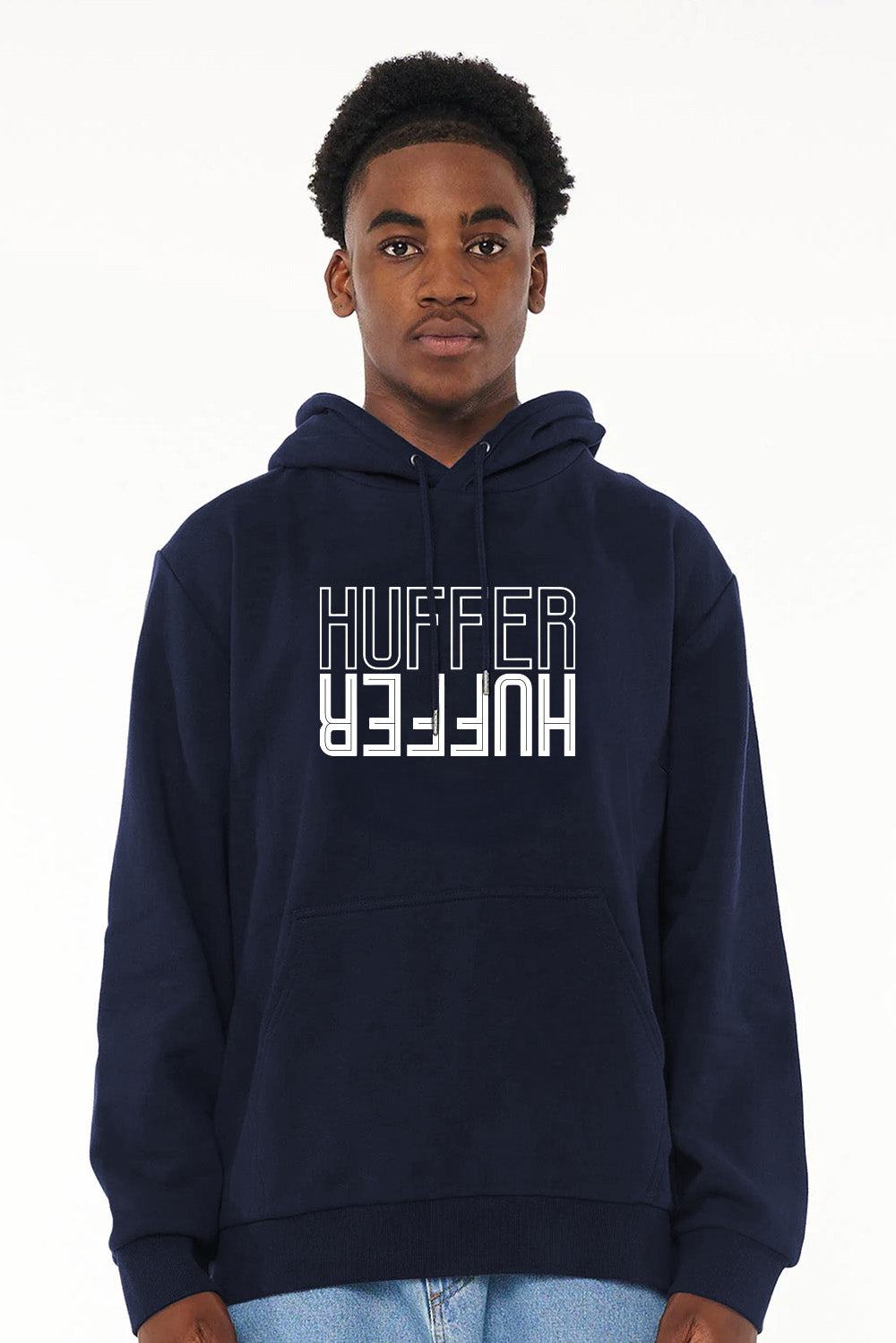 100% Cotton / 300gsm / Mid weight brushback fleece / Self-lined hood / Front kanga pocket detail / Classic fit / Huffer placement print