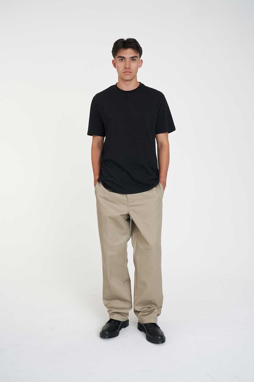 65% Poly 35% Cotton / 310gsm / Heavyweight twill / Classic workwear fit / Straight leg / Centre front crease / Back welt pocket / Huffer branded woven pip