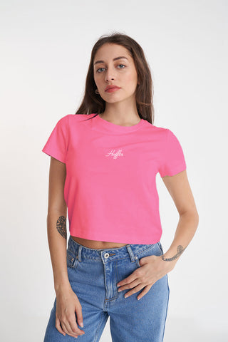 97% Cotton 3% Elastane / 186gsm / Fitted / Cap sleeve / Crop length / Huffer branded placement embroidery